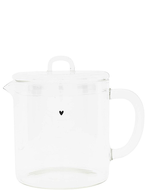 Die schlicht schöne Teekanne aus Glas von Bastion Collections macht deinen Teegenuss noch stilvoller. Denn sie ist aus feinem transparentem Glas gefertigt und lässt deine Teespezialität in ihrer vollen Farbe glänzen. Was wie immer nicht fehlen darf, ist das allseits beliebte schwarze Herz, das vorne auf der Kanne zu finden ist. Es verleiht ihr einen charmanten und romantischen Touch. Die Glaskanne mit dem praktischen Griff hat ein Fassungsvermögen von ca. 1 Liter, sodass du genug Tee für dich und deine Gäste zubereiten kannst. Wenn du das Set komplett machen möchtest, findest du auch passende Teegläser in unserem Sortiment. Dank des abnehmbaren Deckels bleibt dein Tee in der Kanne schön warm und du kannst ihn in aller Ruhe genießen. Der Glasdeckel mit Griff rundet das Design der Kanne perfekt ab. Mit der Teekanne aus Glas von Bastion Collections holst du dir einen echten Klassiker in deine Teestunde. Sie ist nicht nur funktional, sondern auch ein echter Blickfang, der deinen Tisch verschönert.