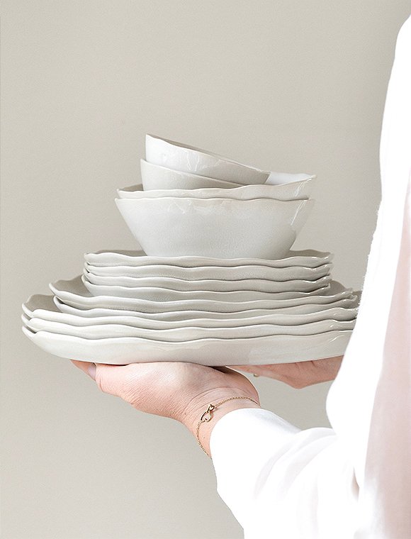 Zeitlos schönes Design in organischer Form! Mit dem Teller June in der Farbe Clay von Bastion Collections zauberst du ein elegantes und klassisches Design auf deine Tafel. Die neue Geschirrserie June des niederländischen Labels beinhaltet viele schöne Teile in einem dezenten Clay-Farbton, was einem sandigen Greige entspricht, welches Natürlichkeit und Eleganz perfekt verbindet. Charakteristisch für das Design sind die perfekt unperfekte Form der Stücke und das jeweils eingeprägte Herz, Ton in Ton - ein zurückhaltendes, typisches Bastion-Collections-Detail – spürbar, aber nicht aufdringlich. Der leichte Glanz macht die Keramik Teller zu etwas ganz Besonderem. Du kannst zwischen vier verschiedenen Teller Größen wählen: ein Kuchenteller (Ø15 cm), ein Dessert Teller (Ø18 cm), ein Frühstücksteller (Ø22 cm) und ein Dinner Teller (Ø26 cm) stehen zur Auswahl. Ergänze die Teller mit weiteren Geschirrteilen aus der gleichnamigen Serie für ein harmonisches Gesamtbild auf deiner Tafel. Wir wünschen guten Appetit beim Essen von den wunderschönen Tellern June in der Farbe Clay von Bastion Collections. Details:
