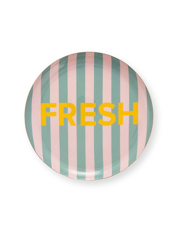 Absolut sweet! Die Teller aus Metall eignen sich zum Dekorieren auf dem Tisch oder als Wandschmuck. Dabei stehen dir vier unterschiedliche Varianten zur Verfügung. Darling: Ø20 cm, Fresch: Ø25, Sil vous plate: Ø30 cm und Bold: Ø35 cm. Die bunt lackierten Teller sind schön für Schmuck, eine Kerzendeko oder du kannst sie als Tablett benutzen. Sie lassen sich wunderbar kombinieren und sind ein absolutes Highlight an der Wand - auf der gold lackierten Rückseite des Tellers findest du die entsprechende Befestigung. Hab viel Spaß an dem süßen Wohnaccessoire dem Teller aus Metall von vtwonen.Details: