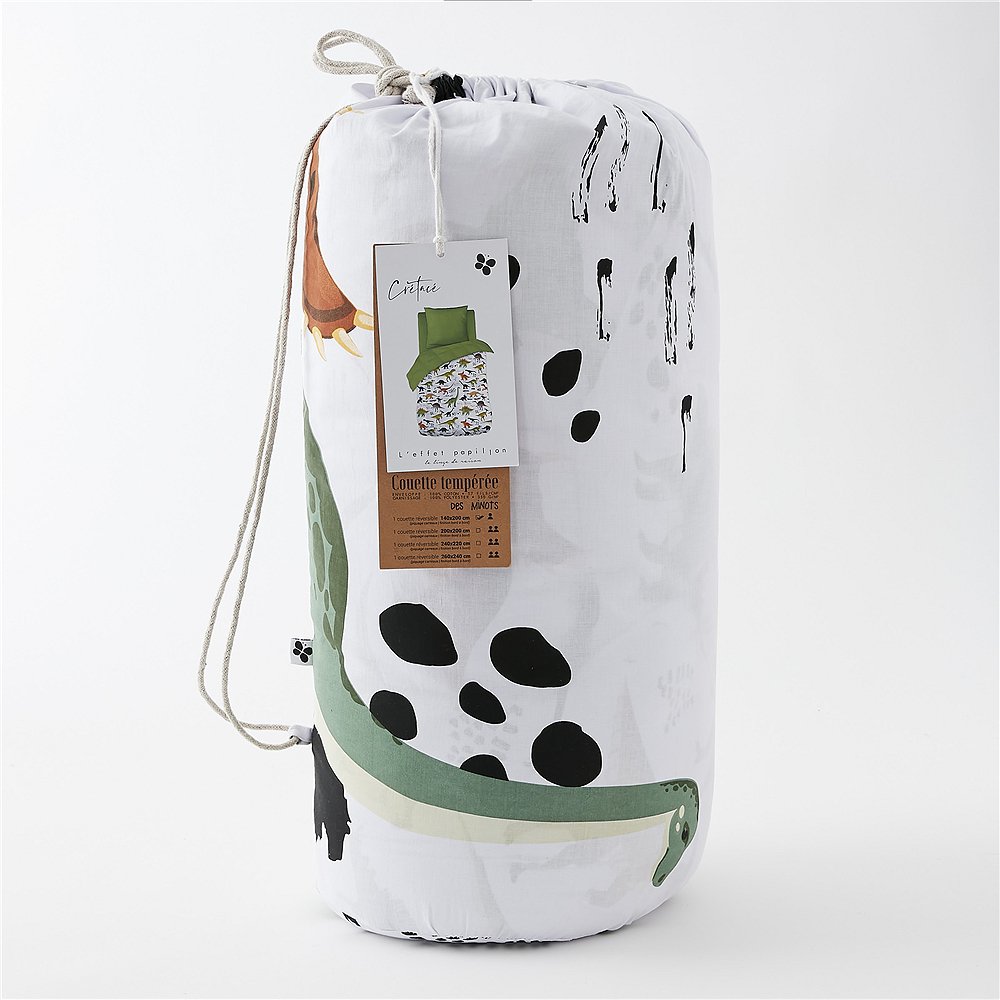 Übernachtungsparty! Die temperierte Kinderdecke von L'effet papillon eignet sich perfekt für Unterwegs. Die 200 x 140 cm große Wende-Decke ist leicht wattiert. Besonders praktisch - der Beutel für die Reise wird gleich mitgeliefert. Zusammengerollt lässt sich die Reisedecke leicht verstauen und kann leicht transportiert werden. Der Bezug ist aus 100% Baumwolle, die Füllung aus 100% Kunstfaser gearbeitet. Die praktische Decke gibt es mit drei besonders niedlichen Motiven: Dinosaurier (Cretace), Tiere der Savanne (Savane) und Igel mit Waldmotiv (Polisson). Das französische Label hat es sich zur Aufgabe gemacht, qualitativ hochwertige, ökologische und aktuelle Textilien anzubieten. So sind alle Produkte unter fairen Bedingungen entstanden und die Wäsche ist selbstverständlich Öko-Tex zertifiziert. Das Unternehmen versucht die Auswirkungen auf die Umwelt zu minimieren, indem sie die Verwendung von Plastik einschränkt und nachhaltige und wiederverwendbare Verpackungen bevorzugt. Wir wünschen deinem Kind jede Menge Spaß mit seinen Freunden und der süßen temperierten Kinderdecke von L'effet papillon.Details: