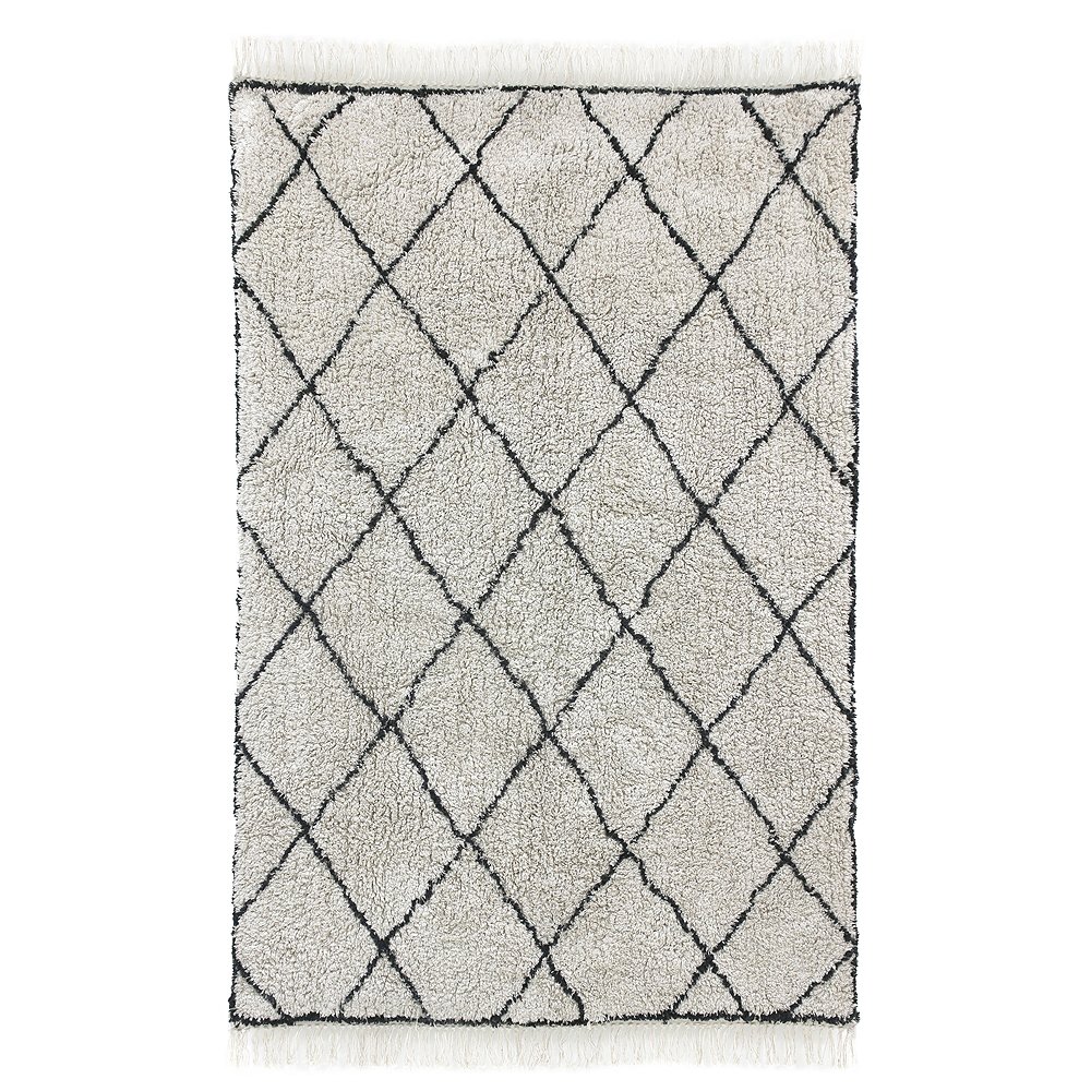 Absolut angesagt! Der Teppich aus Baumwolle von HK Living hat ein Diamant Muster als Motiv eingewebt und ergänzt mit seinem schwarz-weißen Design Ihr Interieur stilvoll. Das Modell mit dem Maß 180 x 120 cm hat helle Fransen an den kurzen Seiten und schafft mit seinem weichen Material eine gemütliche Atmosphäre in jedem Raum. Der Teppich Diamant lässt sich wunderbar mit dem angesagten Boho-Stil kombinieren. Der Teppich aus Baumwolle von HK Living fühlt sich herrlich weich an und ist ein absolutes Liebhaberstück! Details: