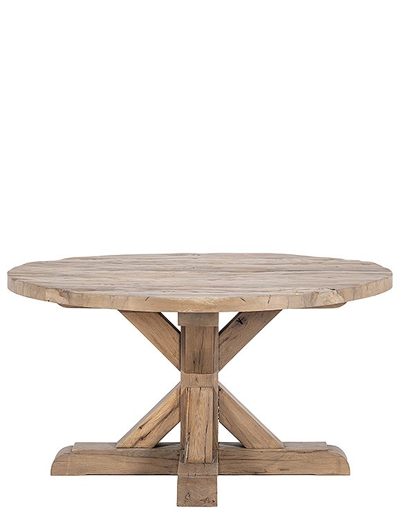Charmant! Der Tisch Honore von car Möbel besticht durch seine schöne Struktur und ist aus recyceltem Massivholz gearbeitet. Den runden Holztisch kannst du aus Kiefern- oder Eichenholz bestellen. Verleihe deinem Interieur einen Hauch von Beständigkeit und lasse diesen Tisch als Mittelpunkt deiner Küche oder deines Essbereichs erstrahlen. Hier kannst du in gemütlicher Runde mit Freunden und Familie sitzen! Die runde Form eignet sich für jede Menge Besuch - da findet jeder einen Platz - einfach zusammen rutschen:). Dieser hübsche Esstisch aus recycelten Materialien lässt keine Wünsche offen und eignet sich prima zum Kombinieren. Du kannst den Tisch mit einer Vielzahl von unterschiedlichen Stühlen einsetzen. Der Tisch ist 76 x Ø 140 cm groß, hat einen massiven Fuß und wird teilmontiet geliefert. Der Esstisch wird solide in Europa gefertigt - und ist eins unserer exklusiven car-Möbel Modelle. Hab viel Spaß an dem Tisch Honore von car Möbel - denn es ist ein langlebiges und schönes Möbelstück.