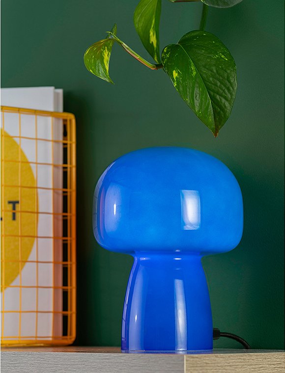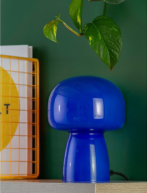 Mit der Tischleuchte Fervor aus Glas von Leitmotiv bringst du modernes Design und gemütliches Licht in dein Zuhause. Die pilzförmige Silhouette aus farbigem Glas macht Fervor zu einem echten Blickfang – ganz gleich, ob auf deinem Nachttisch, im Regal oder als stilvolles Statement auf einer Kommode. Eingeschaltet sorgt sie für ein warmes, atmosphärisches Licht, das jeden Raum sofort einladender wirken lässt. Du kannst zwischen vier trendigen Farben wählen: klassisches Weiß, brillantes Orange, charmantes Retrogrün oder leuchtendes Kobaltblau. Mit einer Höhe von 20 cm und einem Durchmesser von 15 cm ist sie handlich und vielseitig einsetzbar. Das 180 cm lange Textilkabel gibt dir genügend Flexibilität bei der Platzierung. Kompakt, dekorativ und gleichzeitig funktional: Mit der Tischleuchte Fervor aus Glas von Leitmotiv entscheidest du dich für eine Leuchte, die mehr ist als nur eine Lichtquelle – sie ist ein Stück Design für deine Einrichtung. Bitte beachte, dass kein Leuchtmittel (E14) im Lieferumfang enthalten ist. Wir wünschen viel Freude mit der Lampe.