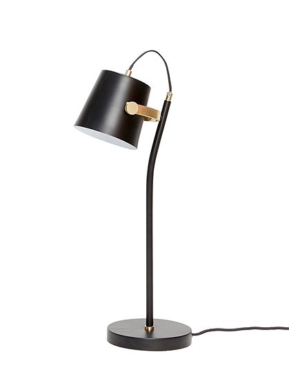 Hier wird es garantiert heller! Die klassische Tischleuchte von Hübsch Interior ist ein absoluter Gewinn auf dem Schreibtisch. Die Leuchte lässt sich leicht im Neigungswinkel verstellen und passt prima zu all den Möbeln im hellen, skandiavischen Stil. Das Textilkabel ist schwarz und mit einem an/aus Schalter versehen (Incl. Elektrik, ohne Leuchtmittel). Die schöne Stehleuchte ist mattschwarz und hat feine Messingdetails.Details: