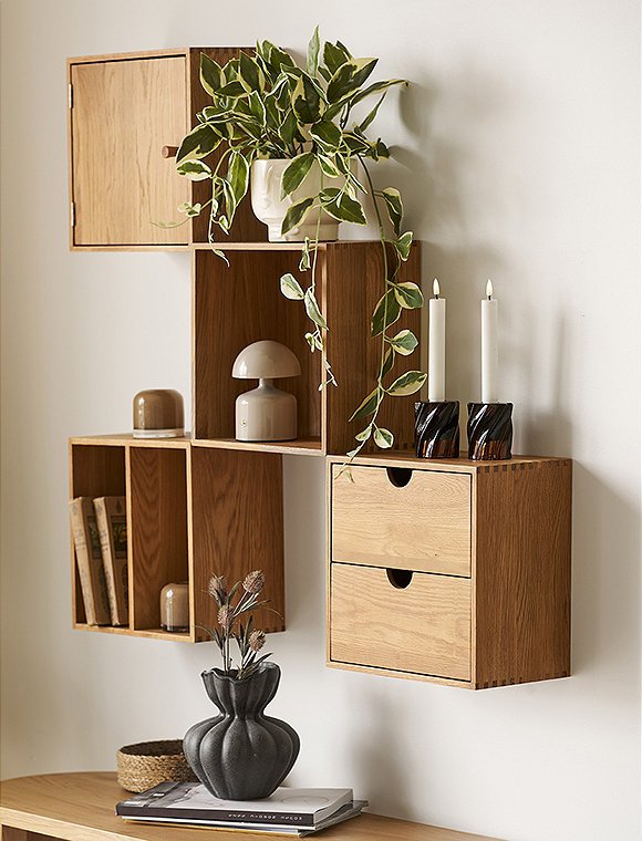 Bildschön aus Eichenholz gearbeitet! Das Townsville Wandregal von House Nordic gibt es in vier tollen Varianten. Damit bleibst du flexibel und kannst dir überlegen was am Besten zu dir passt. Das Regal mit den Maßen 30 x 18 x 30 cm gibt es mit und ohne Regalboden, mit Schubladen oder mit einer Tür. Selbstverständlich kannst du alle vier Varianten prima miteinander kombinieren. Du kannst sie regelmäßig an der Wand befestigen oder frei verteilt aufhängen - alles ist möglich. Das Regal wird montiert geliefert und kann sofort an der Wand befestigt werden. Schön für Küche, Bad und Schlafzimmer geeignet beherbergt es deine Küchen- und Badaccessoires, ein paar Bücher - oder ist für jede Menge Dekorationen zu haben. Das hübsche Regal lässt sich prima kombinieren - ganz besonders edel wirkt es mit Naturtönen. Hab viel Spaß mit dem hübschen Townsville Wandregal von House Nordic und verschöner dein Appartement!Details: