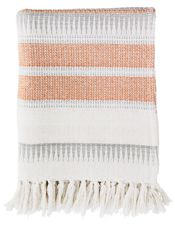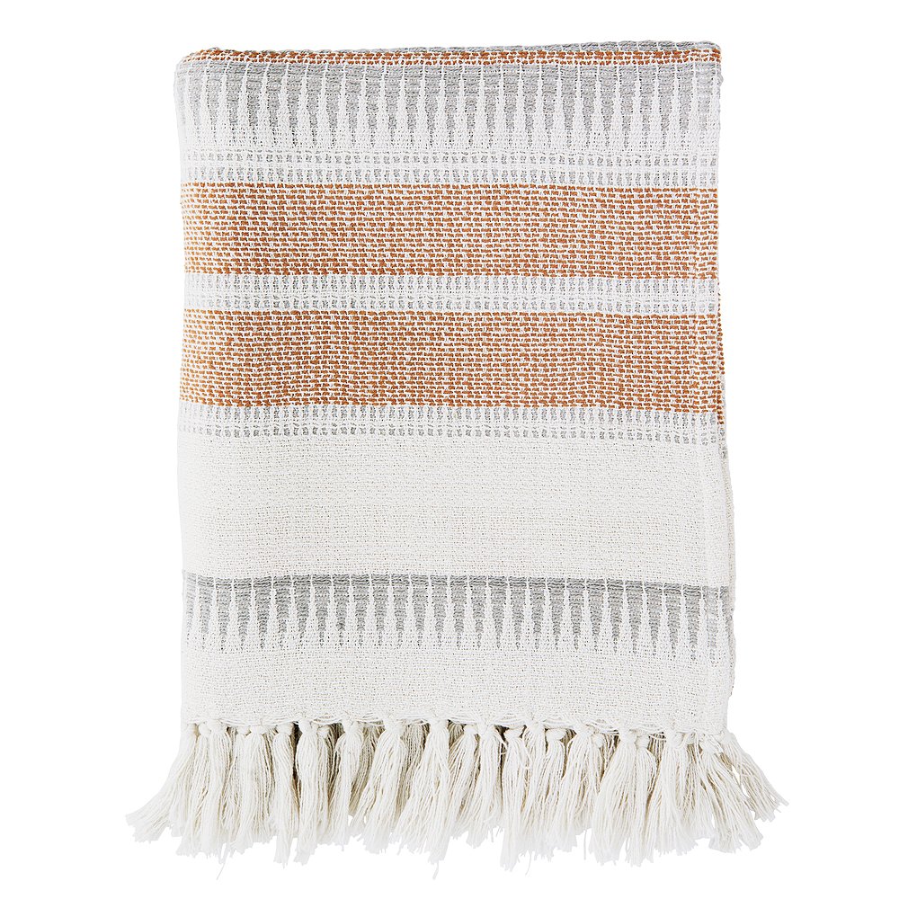 Süßer Überwurf mit Streifen von MADAM STOLTZ - toll fürs Bett oder den alten Sessel - denn schöner kann man sich gar nicht einkuscheln. Die praktische Decke mit Streifen- und Zackenmuster ist auch für Unterwegs gut zu gebrauchen - sie hat die nötige Dicke um es überall ein wenig gemütlicher zu machen. Das Tuch ist 125 x 150 cm groß und wird komplett aus 100% recycelter Baumwolle gewebt. Die hübsche Handarbeit hat eine dekorative Fransenkante und lässt sich bei 40° unkompliziert in der Maschine waschen. Da die Baumwolldecke von Hand gefärbt und verarbeitet wird kann es zu leichten Abweichungen in Farbe und Größe kommen. Hab viel Spaß mit dem Überwurf mit Streifen von MADAM STOLTZ und mach es dir drinnen wie draußen gemütlich!Details: