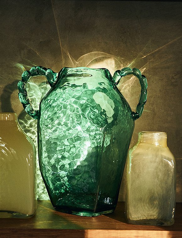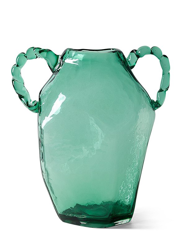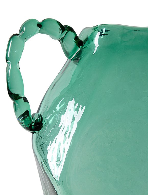 Kunstwerk! Die Vase Amfora aus Glas von Nienke Sikkema für HKliving stellt die Vorstellung von klassischer Glasform infrage. Großzügig dimensioniert, wird ihre Silhouette von ausdrucksstarken Henkeln unterbrochen, die aus facettierten, edelsteinartigen Elementen gefertigt sind – funktional, aber bewusst übertrieben. Das Ergebnis ist ein Objekt im Format 40x23x34 cm, das mit Balance und Erwartung spielt und sowohl Nienke Sikkemas intuitiven Umgang mit Glas als auch unsere gemeinsame Vorliebe für kühnes, charaktervolles Design widerspiegelt. Die Vase Amfora ist wahlweise in Saphir grün oder in Chrytal klar erhältlich. Mehr Objekt als Ornament, lädt sie gleichermaßen zu Licht, Berührung und Neugier ein. Die Zusammenarbeit mit der Glaskünstlerin Nienke Sikkema fühlte sich für das niederländische Label weniger wie eine Kooperation an, sondern eher wie der Eintritt in eine andere Welt. Ihre Welt ist geprägt von fließendem, kontrolliertem Chaos und Formen, die wie geschliffenes Licht wirken. Gemeinsam schufen sie eine Familie von Glasobjekten, die sich wie moderne Edelsteine ??anfühlen – schwer, leuchtend und ein wenig ungebändigt. Mit der Vase Amfora aus Glas von Nienke Sikkema für HKliving zieht ein wunderschöner, strahlender Blickfang in deinem Zuhause ein - wir wünschen viel Freude damit.