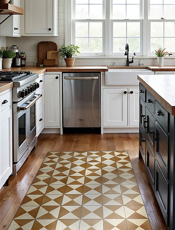 Beeindruckend lang präsentiert sich die Vinylmatte Borgo Antique von Beija Flor. Der Borgo Antique Läufer in grau/weiß ist Teil des Modu-Konzepts und ist 1,20 Meter breit bei einer Länge von beachtlichen 4 Metern. Das Modell ist perfekt geeignet für lange Hausflure und schafft so ein individuelles und modulares Raumerlebnis. Die Vinylmatte in camel/weiß hat die Maße 195x80 cm und ist ebenfalls ein Läufer (nicht Teil der Modu Floor Serie). Das charmante antike geometrische Muster ist aus aller Welt inspiriert. Diese wunderschönen Muster entstanden vor Hunderten von Jahren, als die Menschen in der Natur nach einem Ausdruck von Harmonie und Ausgeglichenheit suchten. Beija Flor vereint diese antiken Designs in einem modernen Rahmen, der perfekt zum Rhythmus der heutigen Zeit passt. Bitte bedenke, wenn du dich für die antike Ästhetik entscheidest, setzst du auf Kreativität. Das Design beinhaltet optische Risse und Abriebe, was absolut gewollt ist um einzigartig zu sein. Solltest du Präzision, Sorgfalt und ein frisches Aussehen bevorzugen, ist der antike Stil vielleicht nicht deine Wahl ;-) Genieße mit der Vinylmatte Borgo Antique von Beija Flor den Komfort eines leichten Designs, der einfachen Handhabung und des geringen Pflegeaufwands für ein individuelles Wohnerlebnis, das die Schönheit deines Bodens unterstreicht.Bitte beachte: Der Vinylteppich wird aufgerollt versendet und ist beim ersten entrollen etwas "bockig". Damit er seine volle Schönheit entfalten kann und möglichst schnell wieder glatt auf dem Boden liegt, einfach die Matte in der Gegenrichtung aufrollen, entrollen und auf den Untergrund legen. Je nach Größe den Teppich mit ein paar Büchern beschweren und ein paar Stunden ruhen lassen. Bei warmen Temperaturen wird die Matte schneller geschmeidig - wer zu ungeduldig ist, arbeitet am Besten in der Sonne, der Nähe der Heizung oder nimmt einen Fön zur Hilfe.Details: