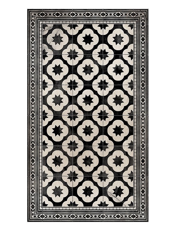 Die Vinylmatte Clover von Beija Flor sieht echten Fliesen zum Verwechseln ähnlich. Die bedruckte Matte hat ein symetrisches Fliesenmuster in weiß und schwarz - wie lauter große Kleeblätter reiht sich das Muster an einander und gibt den Räumen so ihren ganz individuellen Charme. Der perfekte Druck macht sie zu einer guten Alternative zu einem neuen Fußboden und auf Holz oder einfachen Fliesen sind die Matten besonders atraktiv. Oft reicht schon eine kleine Vinylmatte aus um das Gesicht des Raumes zu verändern, und man kann sich das mühevolle Herausreißen des Fußbodens ersparen. Gereinigt wird die bedruckte Matte einfach mit Wasser und Seife.Bitte beachten Sie: Der Vinylteppich wird aufgerollt versendet und ist beim ersten entrollen etwas "bockig". Damit er seine volle Schönheit entfalten kann und möglichst schnell wieder glatt auf dem Boden liegt, einfach die Matte in der Gegenrichtung aufrollen, entrollen und auf den Untergrund legen. Je nach Größe den Teppich mit ein paar Büchern beschweren und ein paar Stunden ruhen lassen. Bei warmen Temperaturen wird die Matte schneller geschmeidig - wer zu ungeduldig ist, arbeitet am Besten in der Sonne, der Nähe der Heizung oder nimmt einen Fön zur Hilfe.Details: