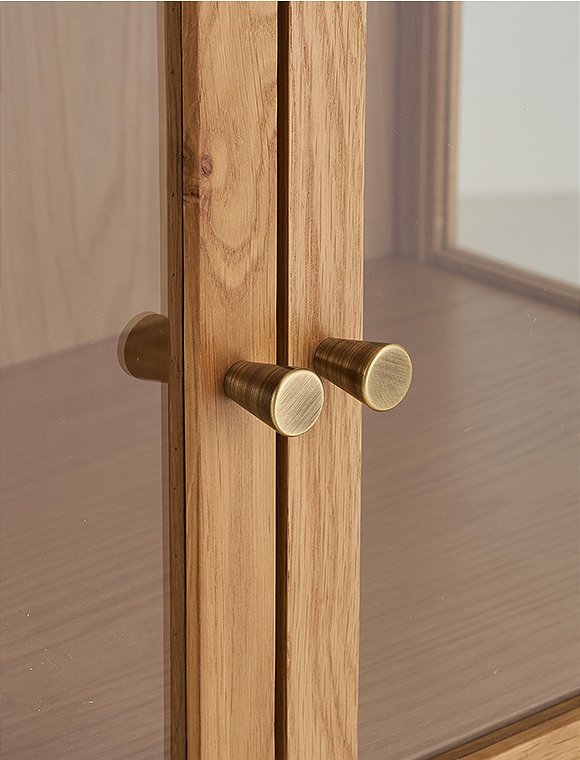 massiver Eichenrahmen mit Türfronten aus Eichenfurnier/Glas, Metallgriff