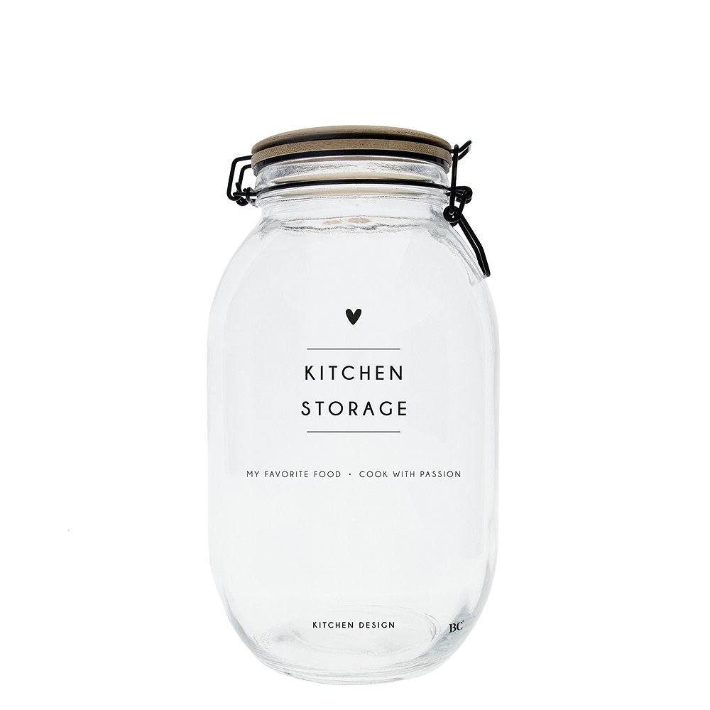 Charmante Aufbewahrung. Das hübsche Vorratsglas mit Holzdeckel von Bastion Collections findet in jeder Küche schnell seinen Platz. Auf dem Regal, im Küchenschrank oder im Buffet, das transparente Aufbewahrungsglas mit den handbemalten Botschaften ist in jedem Falle ein dekorativer Hingucker. Umso praktischer, dass es das Gefäß gleich in zwei Größen gibt: 22xØ10,5 cm oder 26,5xØ14 cm stehen zur Auswahl. Bei der Beschriftung kannst Du zwischen "Make A Fresh Meal For Your Loved Ones" und "Store Your Favorite Ingredients In This Jar" bei den kleinen Gläsern und zwischen "Perfect Storage" und "Kitchen Storage" bei der großen Variante wählen. Befüllt mit Cornflakes, Reis, Müsli, Nudeln oder Tee kommt das schöne Design der Gläser voll zur Geltung. Dank des praktischen und leicht zu verschließenden Holzdeckels und der breiten Öffnung, sind die Lebensmittel leicht zu entnehmen und zu befüllen. Halte Deine Lieblingszutaten lange frisch und gestalte Deine Küche ganz nebenbei modern und natürlich mit dem hübschen Vorratsglas mit Holzdeckel von Bastion Collections. Details:
