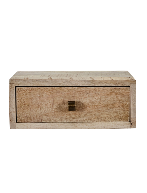 Süßes Wandregal Bedsi house doctor - die schlichte und praktische Lösung für jeden Raum. Das kleine Regal ist 14 x 25 x 35 cm groß und es gibt es in schwarz und natur - es lässt sich prima kombinieren und braucht zudem keinen Bodenplatz. Einfach als letztes schöne Detail an der Wand anbringen. Das Regalelement aus Mangoholz hat eine Schublade für deine Brille, Bücher und andere Dinge. Dieses vielseitige Möbel eignet sich prima als schwebender Nachttisch im Schlafzimmer, als Beistelltisch neben deinem Sessel oder zur Aufbewahrung von Schlüsseln und Kleinkram im Flur. Hab viel Spaß mit dem Wandregal Bedsi von house doctor - denn wir sind uns sicher - du wirst es lieben.