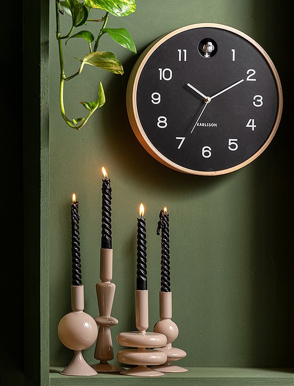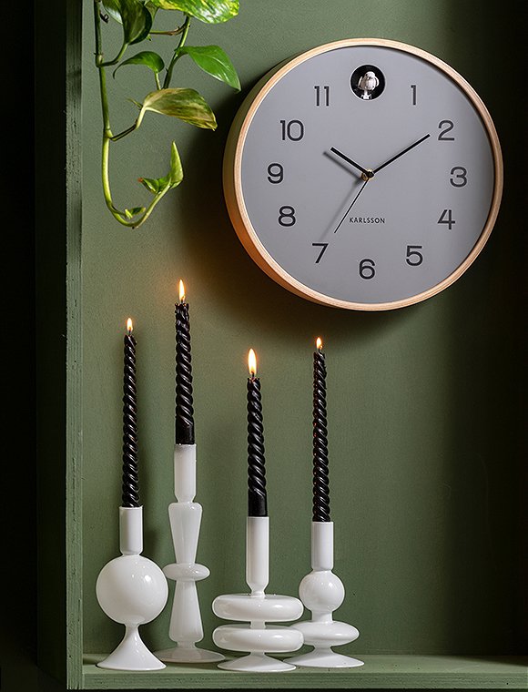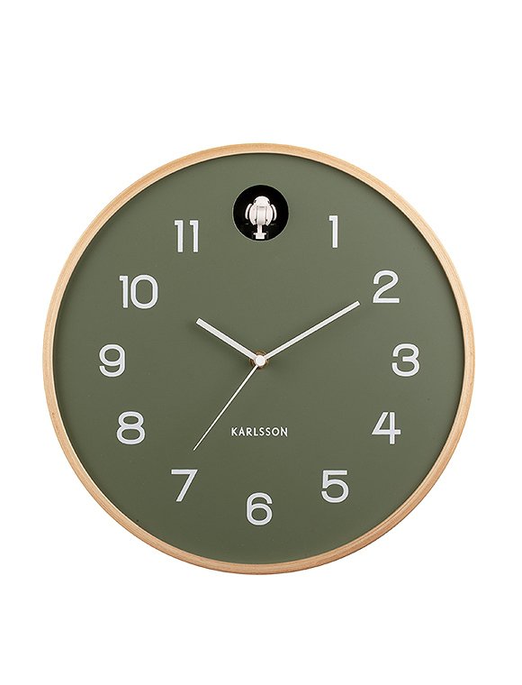 Die hübsche natural Cuckoo-Wanduhr von present time bringt dir das Outdoor-Feeling direkt in dein Zuhause. Dank des Holzdesigns und des farbigen Ziffernblatts hat die Uhr ein sehr edles und gut zu kombinierendes Aussehen. Der Designer Amando Breeveld hat die Uhr so entworfen, dass sie in jedem Wohnraum einen schönen Platz findet - von der Küche bis zum Arbeitszimmer, und vom Wohnzimmer bis hin zum Flur... und, du kommst garantiert nie wieder zu spät :). Die Batterie betriebene Uhr hat einen Rahmen aus Birkenholz und ein farbiges Ziffernblatt - wahlweise in schwarz, grau oder grün. Sie ist 6xØ31,5 cm groß und kann mit unterschiedlichen Farben kombiniert werden. Sie wird verdeckt an der Wand montiert. Bitte beachte, dass die Uhr ohne Batterien geliefert wird, du benötigst 1x AA und 2x LR14. Die klassische Kuckucksuhr ist modern interpretiert - ein gelungener Entwurf des niederländischen Labels. Hab' viel Vergnügen an der natural Cuckoo-Wanduhr von present time - und starte damit gut in den Tag! Hier klicken und hören wie die Zeit klingt. Die Uhren können so konfiguriert werden, dass sie während eines festgelegten 7-stündigen Zeitraums stumm bleiben, zum Beispiel von 22:00 bis 05:00.Details: