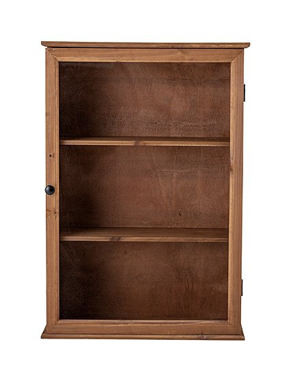 Alles im Blick! Süße Wandvitrine aus Holz von Bloomingville - mit zwei einfachen Einlegeböden. Das Regal ist 67,5 x 21,5 x 46,5 cm groß und ideal für Bad, Küche oder Schlafzimmer. Ein tolles Möbelstück, das sich prima kombinieren lässt. Schnell sind jede Menge Kosmetik, Tee oder kleinere Dekoartikel verstaut - vor Staub geschützt - und bleiben trotzdem schön sichtbar. Die hübsche Vitrine ist aus Kiefernholz gearbeitet, hat eine Glastür mit Holzrahmen und lässt sich verdeckt (an zwei kleinen Ösen) an der Wand befestigen. An dem kleinen Metallknopf lässt sich die Tür unkompliziert öffnen - und kleine Magnete sorgen für den richtigen Verschluss. Der kleine Schrank wird montiert geliefert, die einzelnen Regalböden können mit je 2 Kg belastet werden. Wir wünschen dir viel Spaß mit der süßen Wandvitrine aus Holz von Bloomingville.Details: