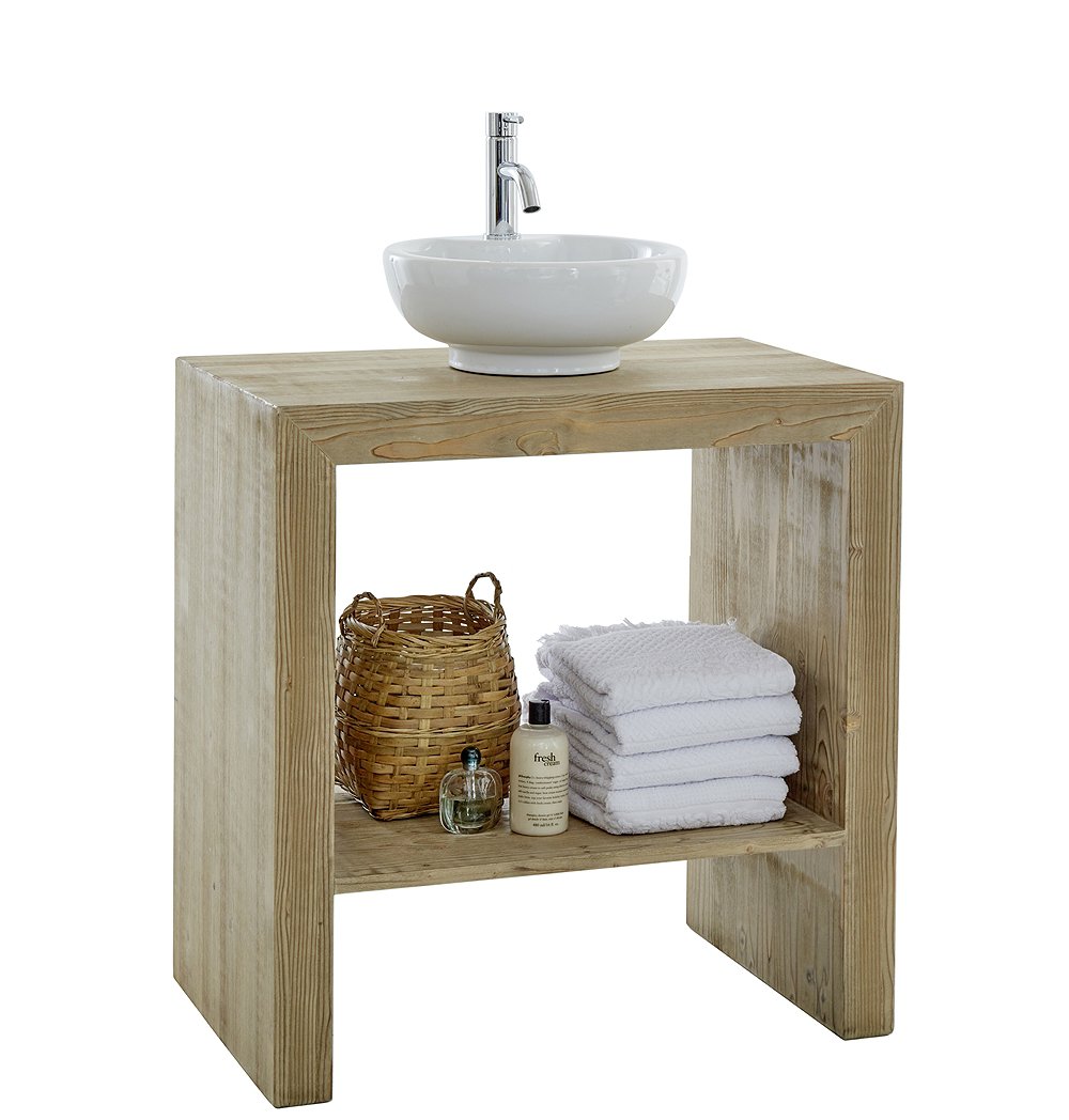 Edel! Der schöne Waschtisch aus Massivholz ist gerade geschnitten und hat eine Ablagefläche unter dem Waschbecken. Bei diesem Tisch haben Sie die Wahl, ob Sie ihn ohne Keramikbecken oder mit dem runden Becken bestellen möchten. So sind Sie noch ganz frei in Ihren Gestaltungsmöglichkeiten! Denn dieser Tisch sieht auch super mit einem eckigen Becken und Wandarmaturen aus! Bei der Oberfläche können Sie zwischen weiß gestrichen oder natur gebürstet wählen. Der Tisch wird bereits fertig montiert geliefert. Bitte beachten Sie, daß noch keine Löcher auf der Tischplatte für das Waschbecken vorgebohrt sind. Im Lieferumfang ist keine Armatur und auch kein Abfluß enthalten. Auch als Doppelwaschtisch erhältlich. Details:
