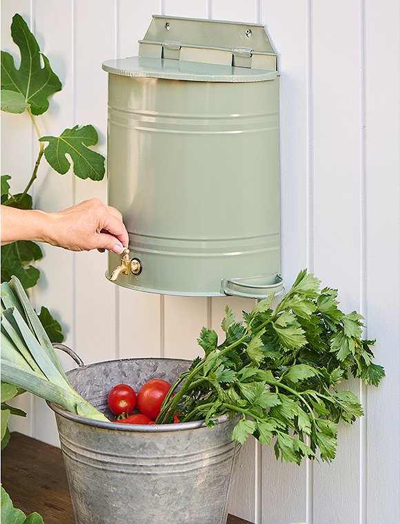 Perfekt für den Garten! Mit dem charmanten Wasserbehälter für die Wand, 10,5 Liter von Ib Laursen bist du bestens gerüstet für all deine Gartenprojekte. Denn das Modell - wahlweise in einem charmanten Grünton oder in Zink - verwandelt deinen Garten in eine echte Wohlfühloase! Der Wasserbehälter aus robustem Metall ist nicht nur praktisch, sondern auch ein echter Hingucker. Dank des integrierten Messing-Wasserhahns zapfst du Wasser ganz bequem – perfekt für saubere Hände nach dem Pflanzen und Umtopfen. Die kleine, praktische Ablagefläche an der Seite bietet dir Platz für Seife oder andere nützliche Kleinigkeiten, die du im Garten immer griffbereit haben möchtest. Händewaschen im Freien – ideal für Außenküche, Gartentisch oder Gewächshaus. Das Nachfüllen ist kinderleicht: Einfach den klappbaren Deckel öffnen, Wasser einfüllen und schon ist dein Gartenfreund mit einem Fassungsvermögen von 10,5 Litern wieder einsatzbereit. Der grüne oder verzinkte Look verleiht deinem Außenbereich eine charmante, zeitlose Note, die perfekt mit Blumen, Gemüsebeeten oder deinem Gartenmöbelstil harmoniert. Egal, ob du deine Gießkanne auffüllen möchtest, frisches Wasser für den Grillbereich benötigst oder deine Gartengäste beeindrucken willst – dieser Wasserbehälter ist ein vielseitiger Helfer mit Stil. Hol' ihn dir und mach deinen Garten mit dem Wasserbehälter für die Wand, 10,5 Liter von Ib Laursen noch praktischer und schöner!