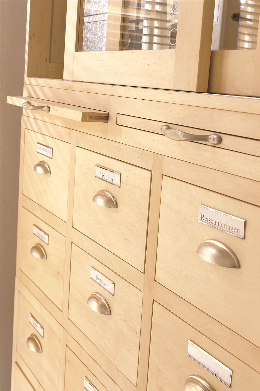 Das Auszugmodul gehört zu unserem Modulprogramm. Insgesamt stehen dir 22 Module zur Auswahl. Mit deiner Phantasie sind dir kaum Grenzen gesetzt. So lassen sich Rollkommoden, Sideboards, Kommoden, Hängeschränke, Schränke, Vitrinen, Vertikos, Sekretäre, Schrankwände und vieles mehr entwerfen. Das Auszugmodul bietet sich besonders dann an, wenn eine zusätzliche Ablagefläche benötigt wird. In dem Modul sind zwei Ausziehtabletts. Du kannst alle Module aus Erlenholz unbehandelt, gewachst oder weiß lackiert bestellen. Diese werden bereits montiert geliefert, so dass du ganz schnell deine Ideen in die Tat umsetzen kannst. Bitte beachte, dass du für die Module als unteren Abschluss eine Deckplatte oder Sockel und für den oberen Abschluss eine Deckplatte oder Kranz wählen kannst. Es sind keine Griffe im Lieferumfang enthalten und auch keine Löcher in den Modulen vorgebohrt. So kannst du noch deinen Lieblingsgriff anbringen. Eine große Auswahl an Griffen findest du in unserer Rubrik Möbelgriffe.