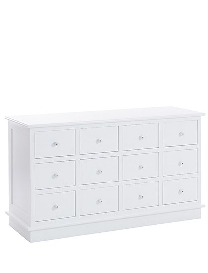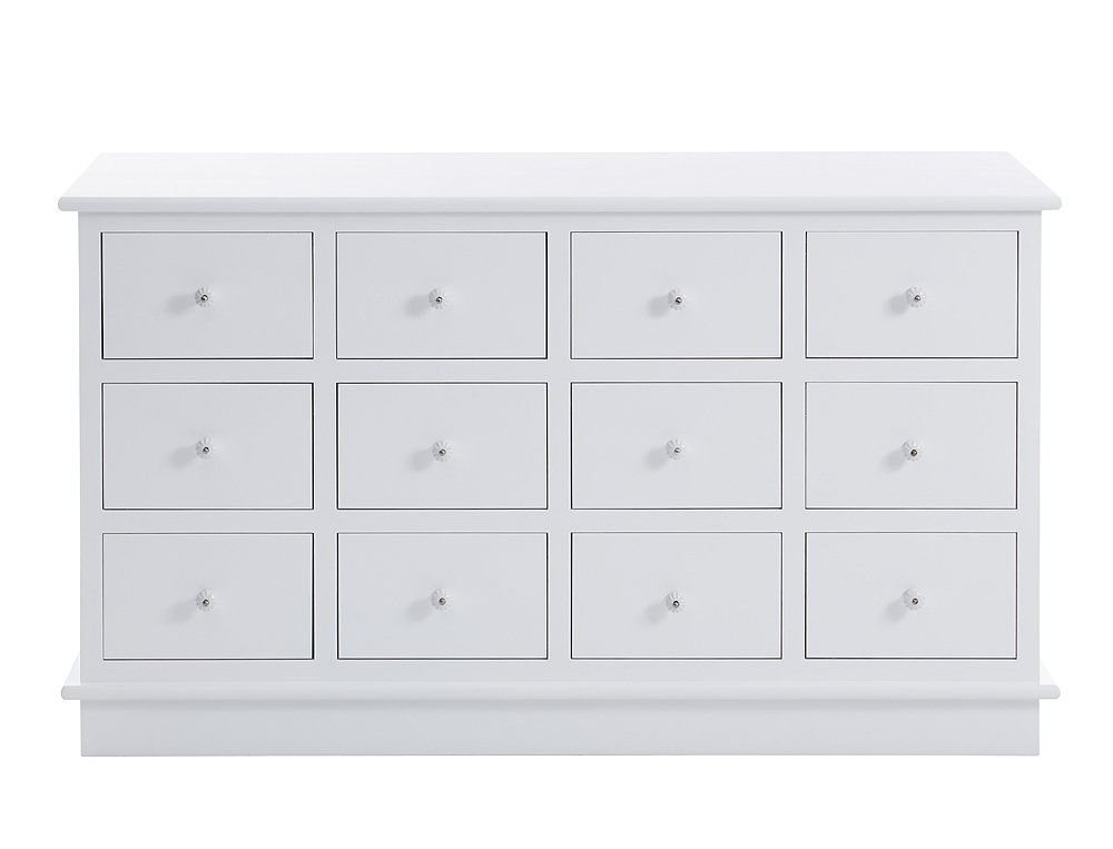 In diese Wohnzimmer Kommode mit 12 Schubladen können Sie allerlei verstauen! Durch ihre schlichte Eleganz ist sie besonders vielseitig z. B. als Anrichte, Sideboard, Kommode, Tischunterbau einsetzbar. Die geräumigen Schubladen haben alle das gleiche Maß (Innenmaß HxTxB: 14,5 x 36,5 x 25,5 cm). Die Kommode ist aus unbehandeltem Erlenholz, gewachst oder weiß lackiert erhältlich. Sie kommt fertig montiert in Ihr Haus. Es sind keine Griffe im Lieferumfang enthalten und auch keine Löcher vorgebohrt. So können Sie noch Ihren Lieblingsgriff anbringen. Eine große Auswahl an Griffen finden Sie in unserer Rubrik Möbelgriffe.