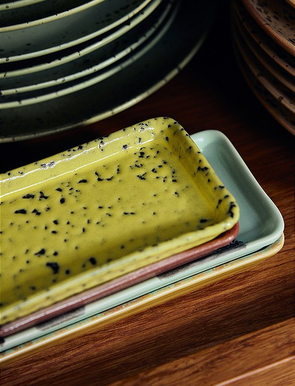 Klein, aber voller Charakter - Entdecke das XS Tablett, 2x7,7x13,6 cm, 70s Keramik von HKliving. Du kannst zwischen zwei verschiedenen Designs wählen: Die Schale Corn XS in einem frischen Gelb Ton überzeugt mit lebendiger Glasur und verspielten Sprenkeln, perfekt für Dips, Snacks oder als dekoratives Highlight auf deinem Tisch oder offenen Regalen. Die Bloom XS hingegen besticht durch einen sanften Farbverlauf von Rosa- und Rottönen und ein zartes, fast malerisches Finish – ideal, um kleine Leckereien, Schmuck oder Alltagsgegenstände stilvoll zu präsentieren. Ob als Snackschale, Mini-Servierteller, Aufbewahrung für Kleinigkeiten oder dekoratives Detail – diese kompakten Schalen zeigen, dass auch kleine Objekte große Wirkung entfalten. Wir wünschen viel Freude mit dem süßen XS Tablett, 2x7,7x13,6 cm, 70s Keramik von HKliving.